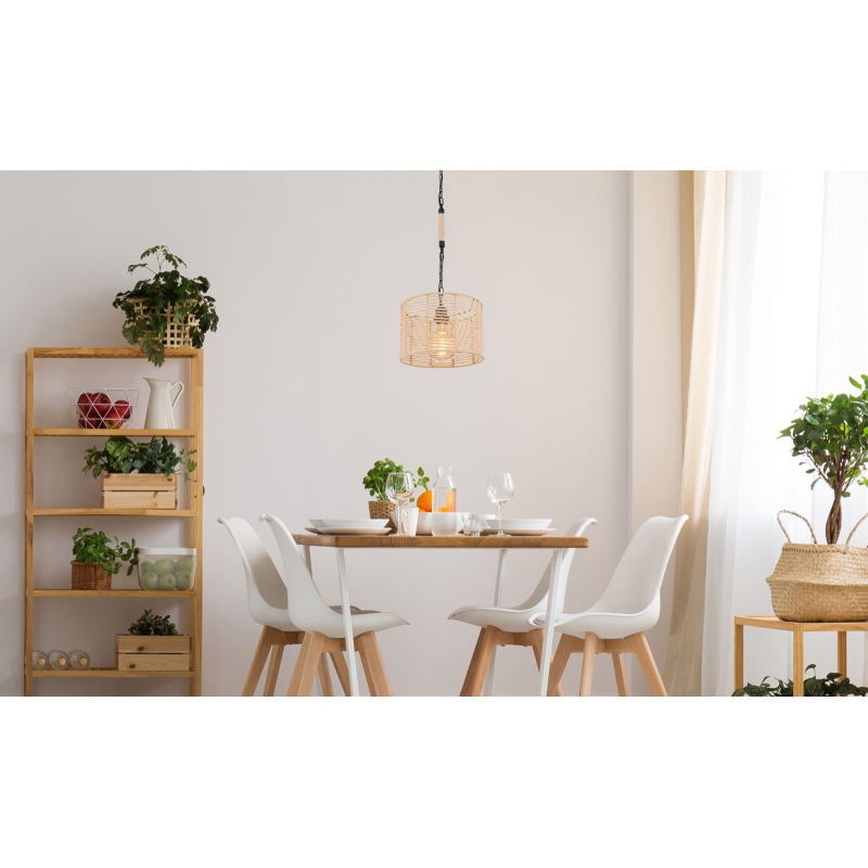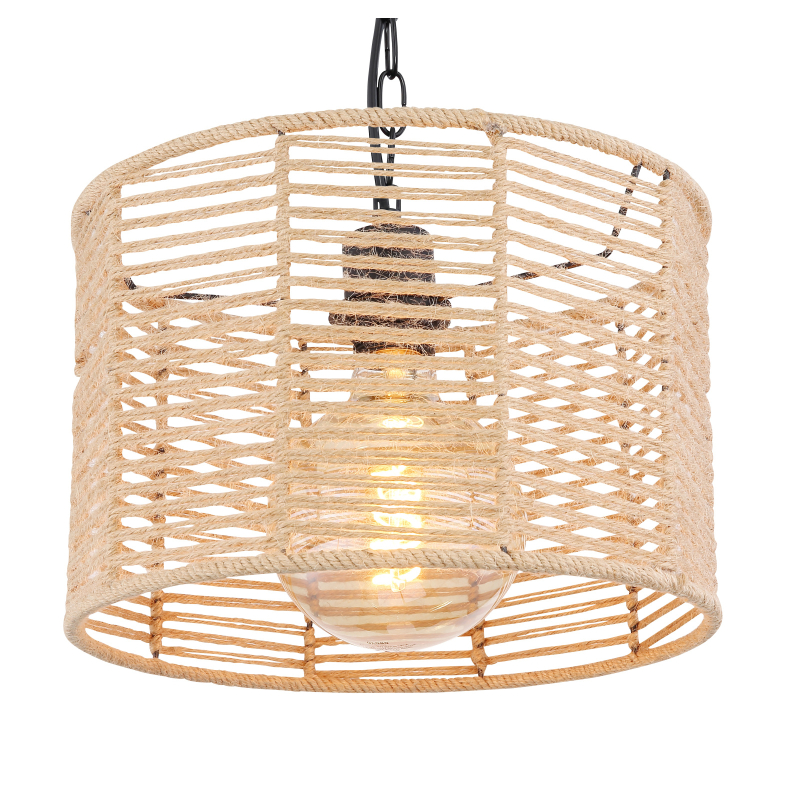 15672H HALIA, Metāla piekaramā lampa, melna matēta, brūna kaņepju virve, D310mm, H1200mm,1xE27 GLOBO