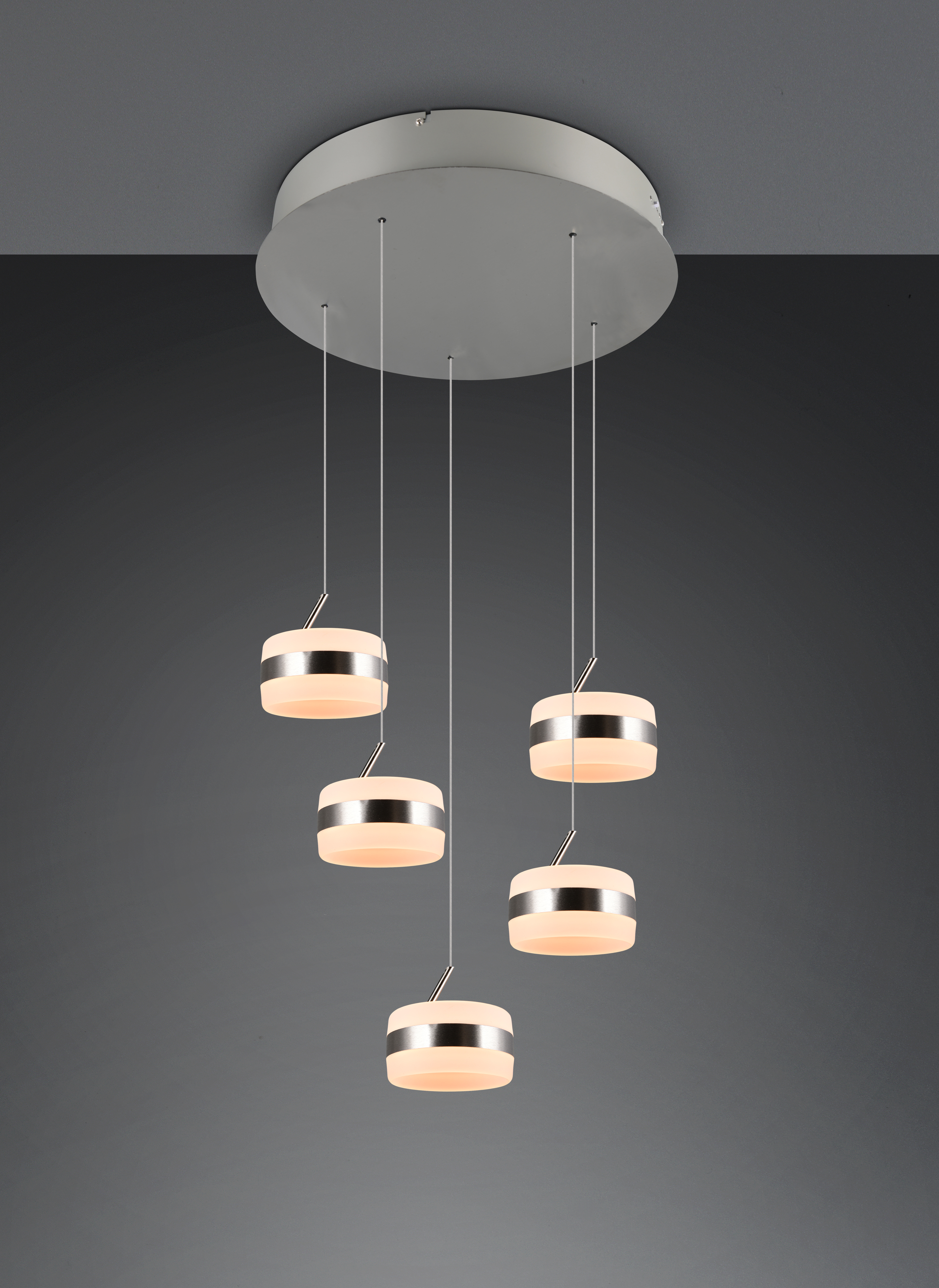331430507 DIOS Mat. niķelis, LED 5x8W 4000Lm 2300/3000/4000K LIFT Hmin650 max1500mm D450mm TRIO