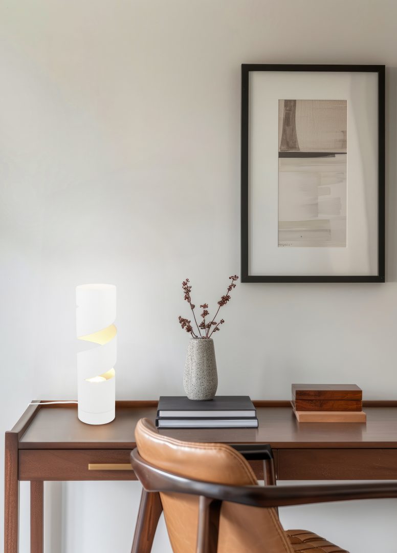 564000131 STREAM. Galda lampa, metāls balts, 1xGU10, H350mm D100mm TRIO