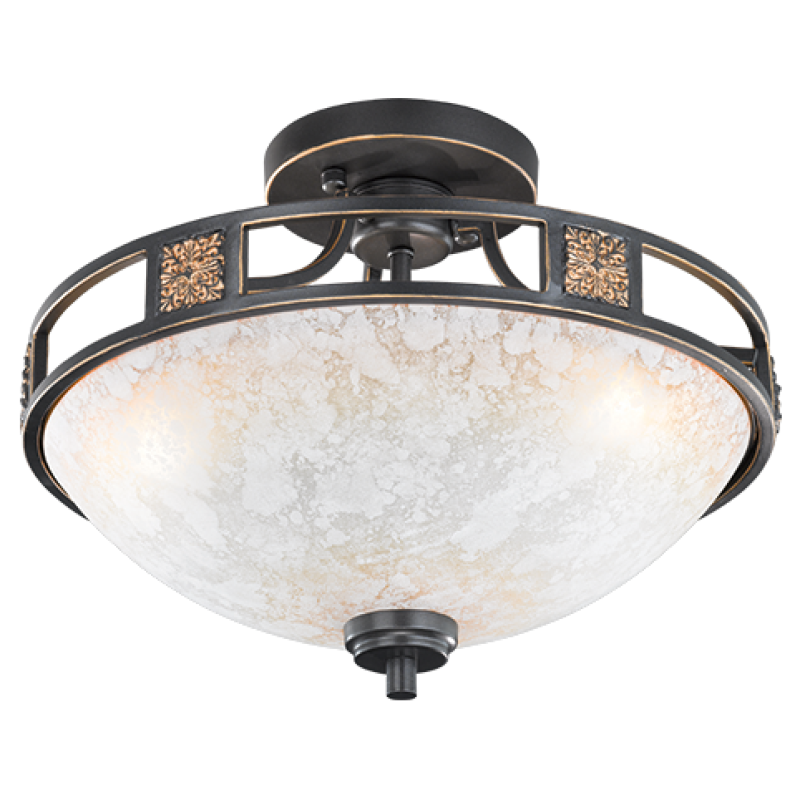 608100324 QUINTA Plafons novecota rūsas krāsas,stikls, alabastra krāsā 3xE27 D420mm H320mm TRIO